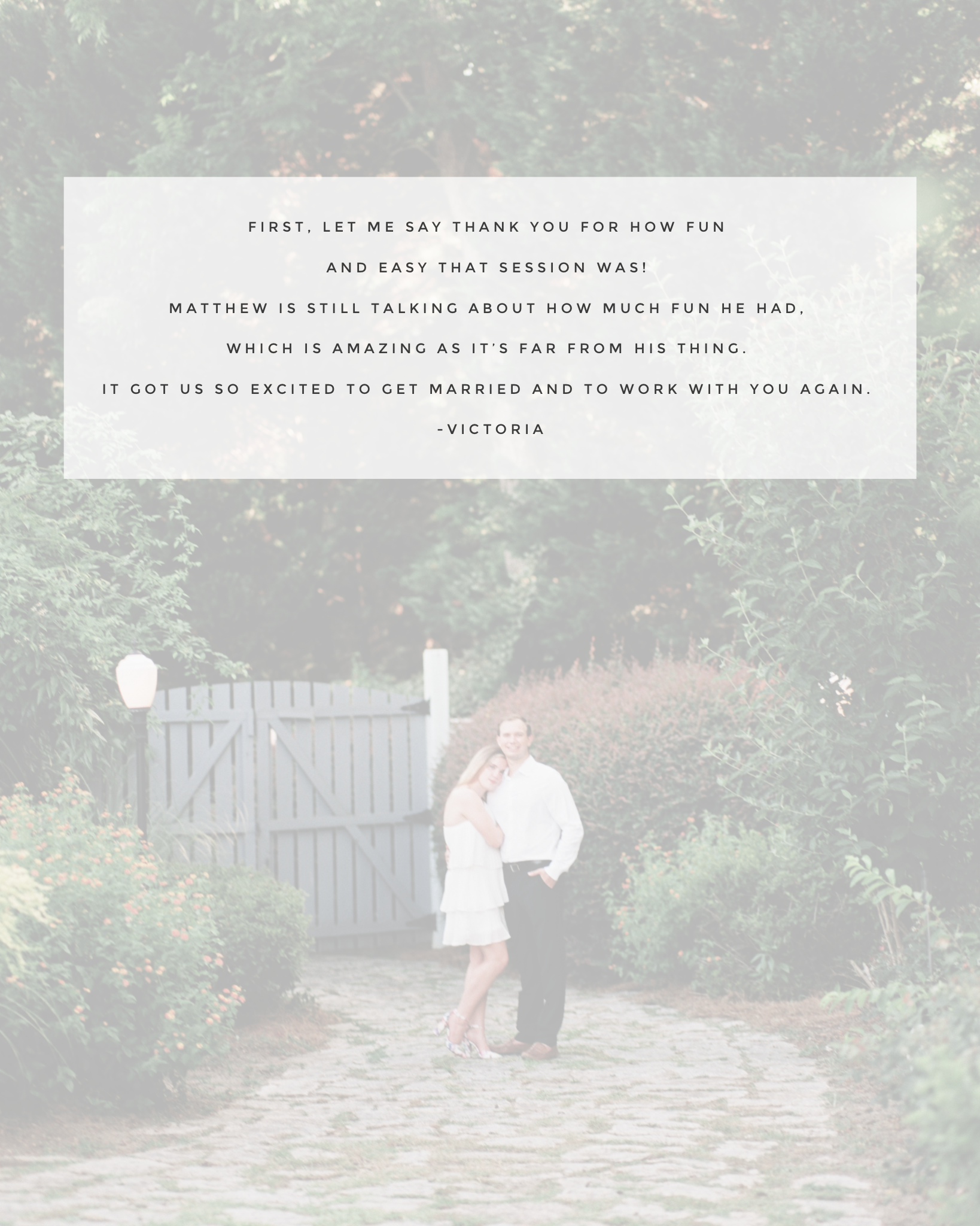 Every love & personal story are each very unique. I wish to connect with my clients in a way that offers me an understanding of who they are and what they and their stories are about.